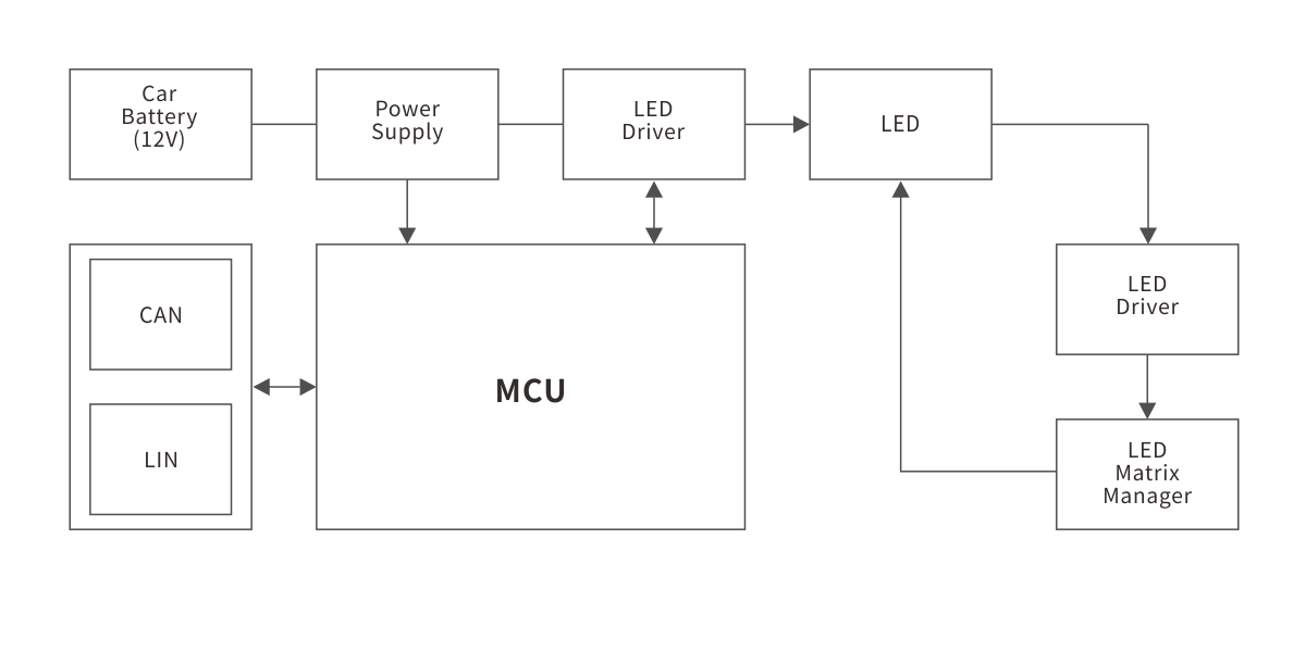 汽车前照灯一般使用LED进行道路照明,采用电机调平,旋转,关闭远光灯和近光灯。常见的电路威胁包括负载转储,浪涌、静电放电和短路。常常采用自恢复保险丝、TVS二极管、静电抑制器等产品进行电路保护。
