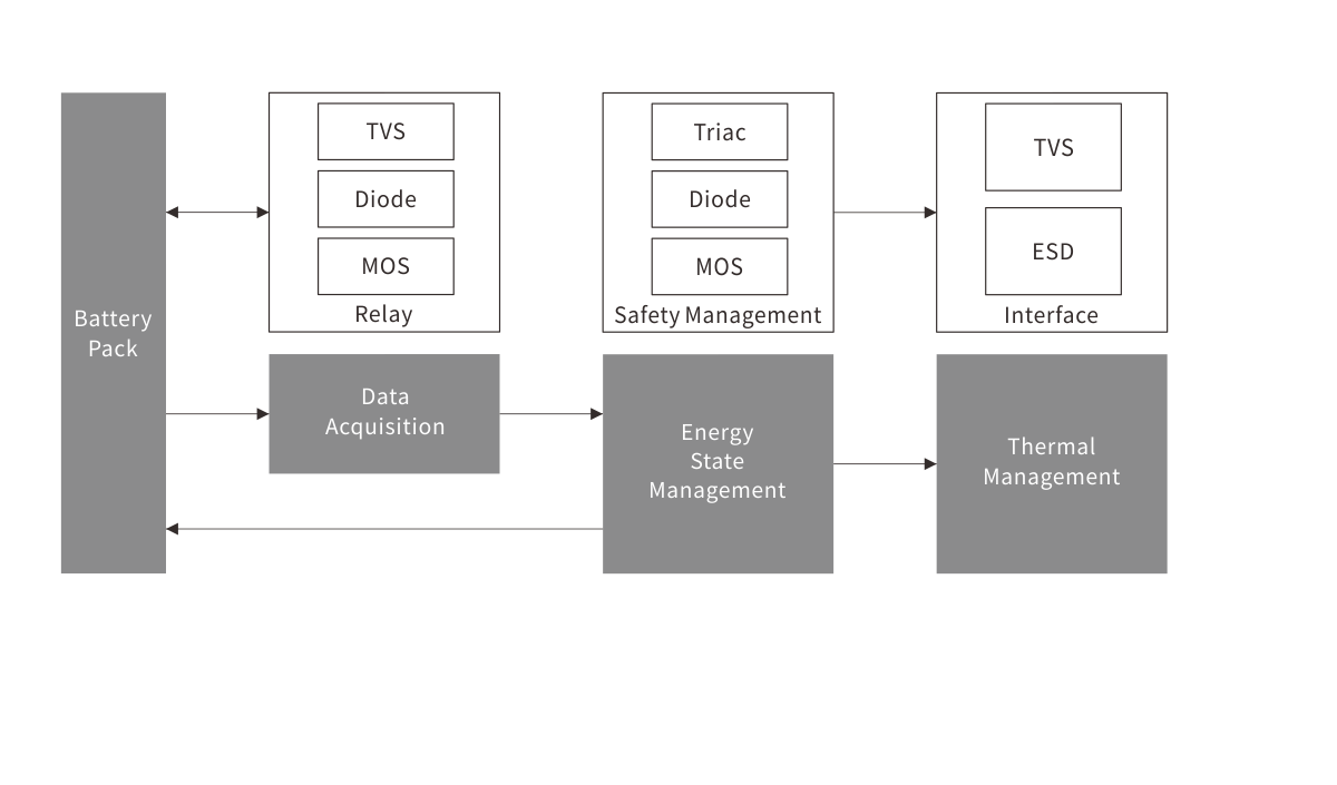 储能电池管理系统(BMS)是专门用于储能系统(Energy Storage System, ESS)的智能化控制核心,负责电池的安全、高效和长寿命运行。Semiware 高可靠的产品可对系统电流予以有效控制,避免电池出现过充电和过放电的情况,进而延长电池的使用年限。