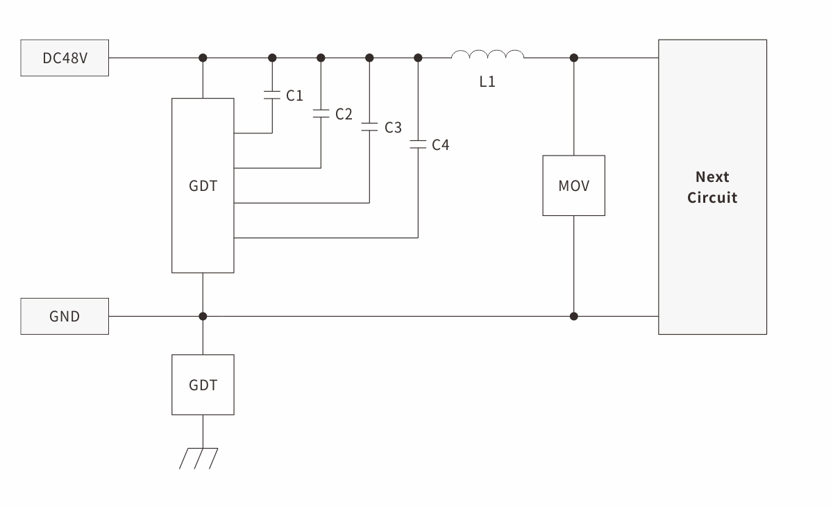 48V 直流电源系统广泛应用于通信设备、电动汽车、工业控制、充电桩等场景。其工作电压高于常见的12V/24V系统,因此在遭遇浪涌时的电压应力、能量承受要求更高。
